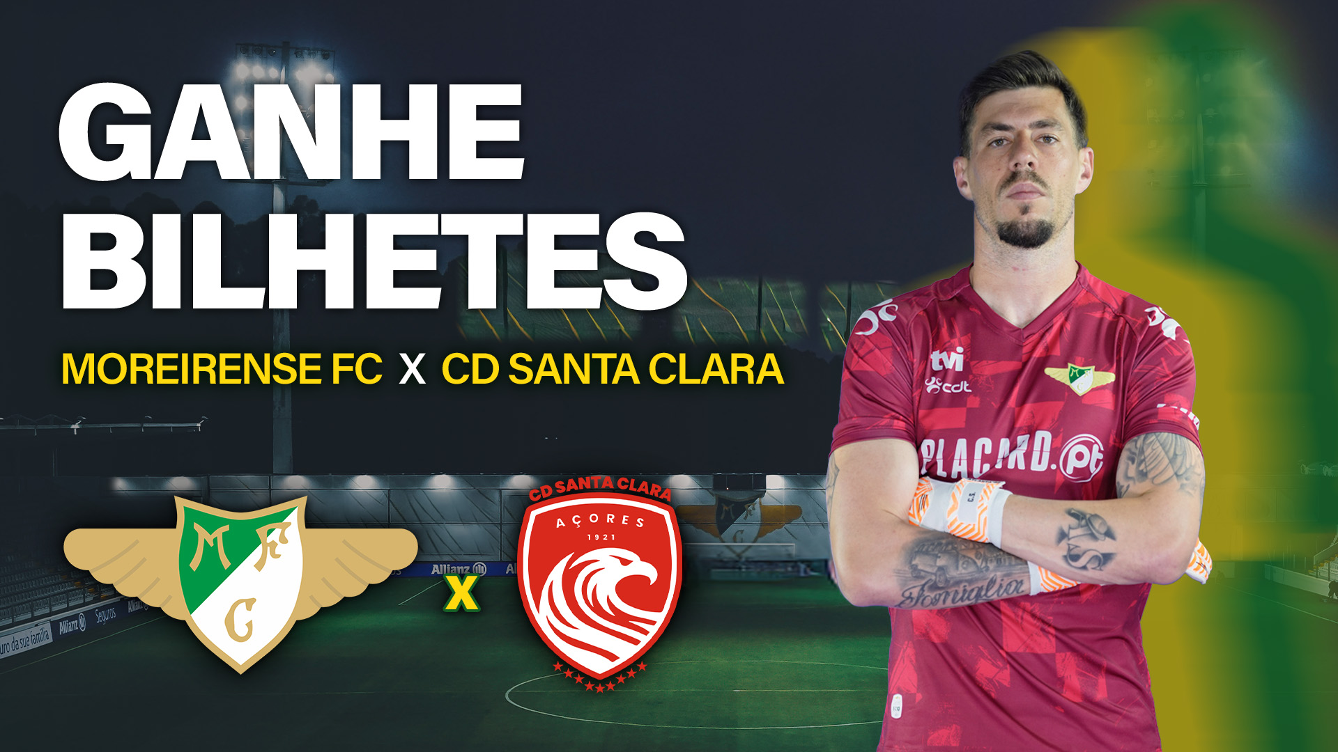 Temos 10 bilhetes duplos para assistir ao jogo de futebol entre o Moreirense FC x CD Santa Clara, que se realizará no dia 24 de janeiro, às 15h30, no Estádio Comendador Joaquim de Almeida Freitas, em Moreira de Cónegos.